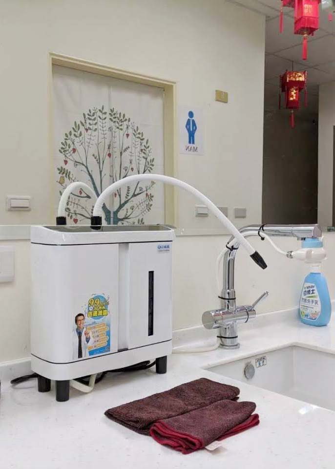 得利於使用導電性極好的鹽酸作為電解液,因此可以立即得到大量且濃度穩定的次氯酸水、且電解的耗電低(不超過60瓦);這使得我們的次氯酸水生成機,運轉方式就相當雷同家中的飲水機,要用多少次氯酸水,就打開水龍頭多久,接滿一桶好神拖水箱只需2分鐘;直覺使用,不需等待、不需稀釋,我們堅信這才是次氯酸水生成機該有的姿態!