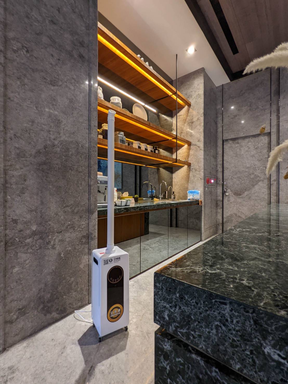 利用非尖峰時間、或非營業時間,對空間進行次氯酸水的噴霧消毒,大大有助於降低空間中的細菌/病毒傳播,也能大幅降低人員的清潔花費時間;霧化機噴出的極緻微霧,能完整到達物品表面、縫隙,讓細菌與病毒無所遁形!